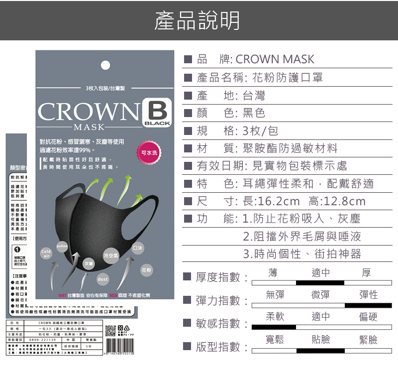 但一些該買的還是要買,這次買的是 【台灣製造】CROWN減壓塑顏貼合口罩(3入/包)